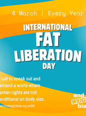 International Fat Liberation Day was initiated by End Weight Bias, an Australian-based not-for-profit, member-led advocacy organisation. As an organisation grounded in lived experience and systemic advocacy, we created this day to offer a counter-narrative to weight-centric public health messaging and to advance evidence-based, weight-neutral approaches that promote dignity and equal access for people of all sizes.